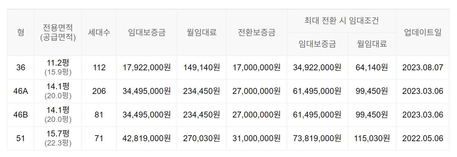 임대보증금 및 월 임대료는 입주자 모집공고일 기준이며, 보증금 최대 전환 시 변동될 수 있습니다.