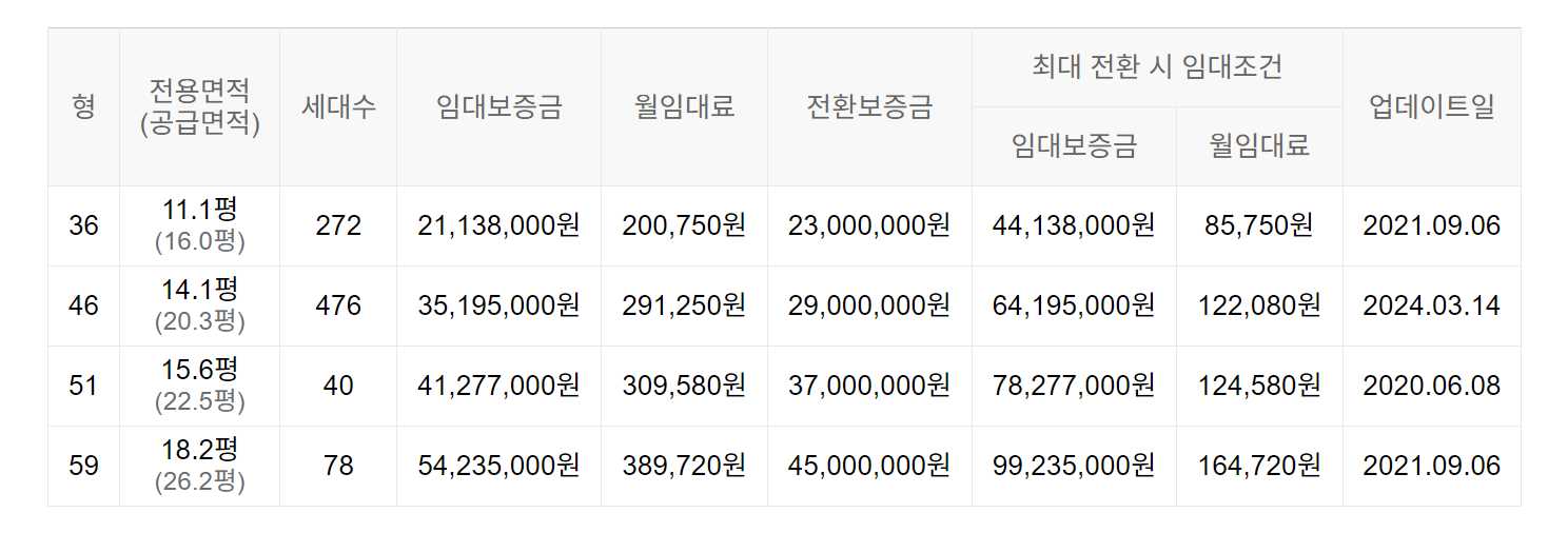 임대보증금 및 월 임대료는 입주자 모집공고일 기준이며, 보증금 최대 전환 시 변동될 수 있습니다.