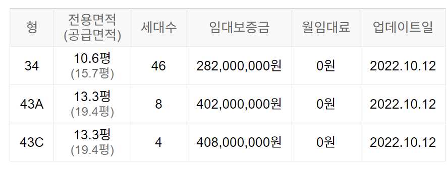 임대보증금 및 월 임대료는 입주자 모집공고일 기준이며, 보증금 최대 전환 시 변동될 수 있습니다.