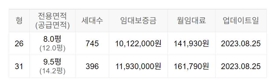 임대보증금 및 월 임대료는 입주자 모집공고일 기준이며, 보증금 최대 전환 시 변동될 수 있습니다.