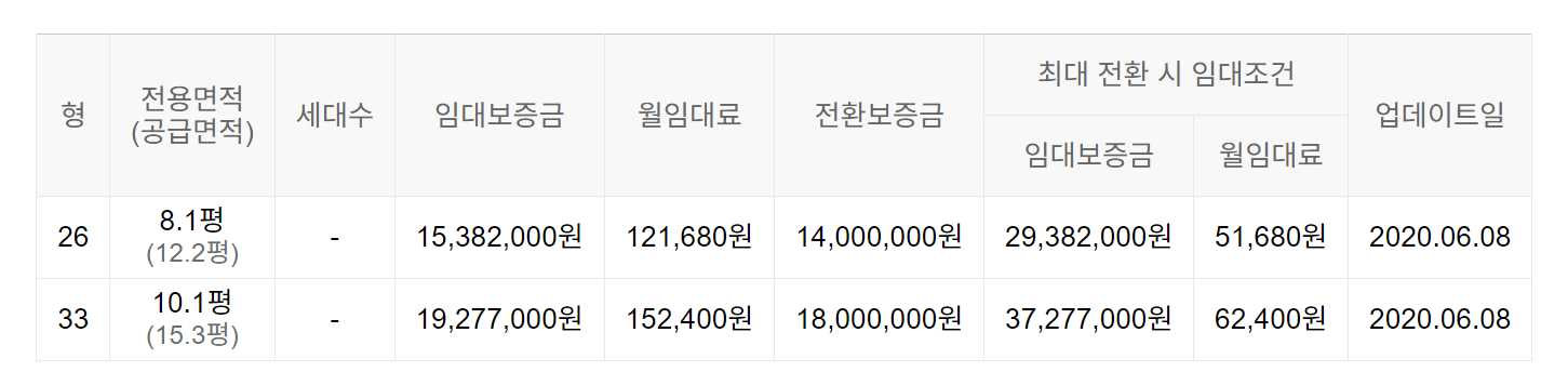 임대보증금 및 월 임대료는 입주자 모집공고일 기준이며, 보증금 최대 전환 시 변동될 수 있습니다.