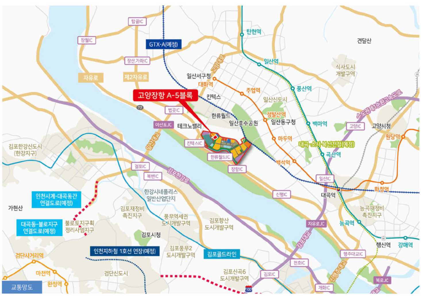 고양장항A-5블록은 다양한 편의시설을 갖춘 지역에 위치하고 있습니다.