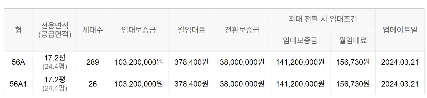 임대보증금 및 월 임대료는 입주자 모집공고일 기준으로 보증금 최대 전환 시 변동될 수 있습니다.