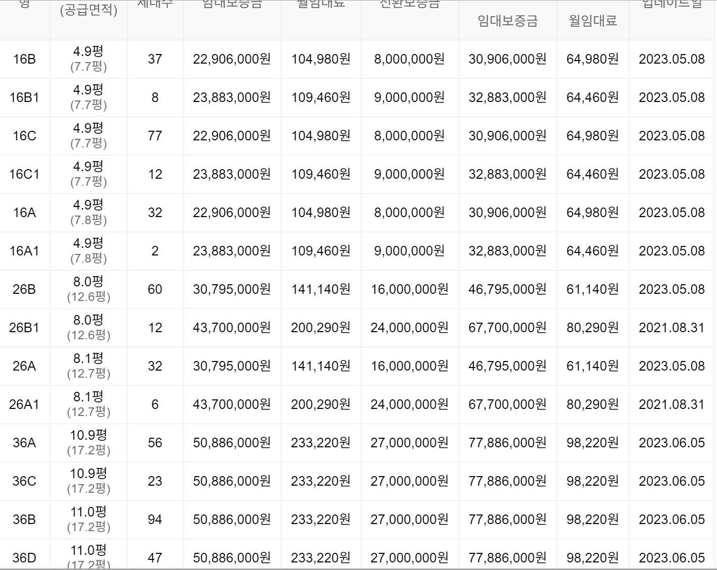 임대보증금 및 월 임대료는 입주자 모집공고일 기준으로 보증금 최대 전환 시 변동될 수 있습니다.
