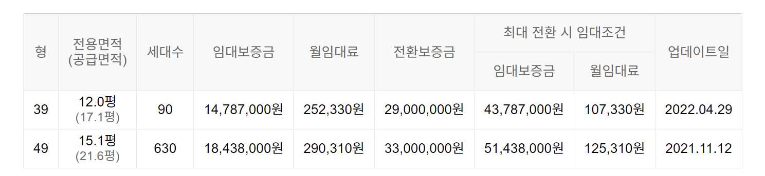 임대보증금 및 월 임대료는 입주자 모집공고일 기준이며, 보증금 최대 전환 시 변동될 수 있습니다.