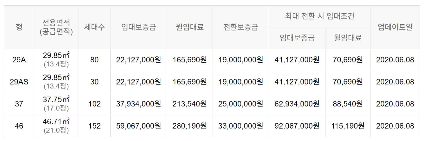 임대보증금 및 월 임대료는 입주자 모집공고일 기준이며, 보증금 최대 전환 시 변동될 수 있습니다.