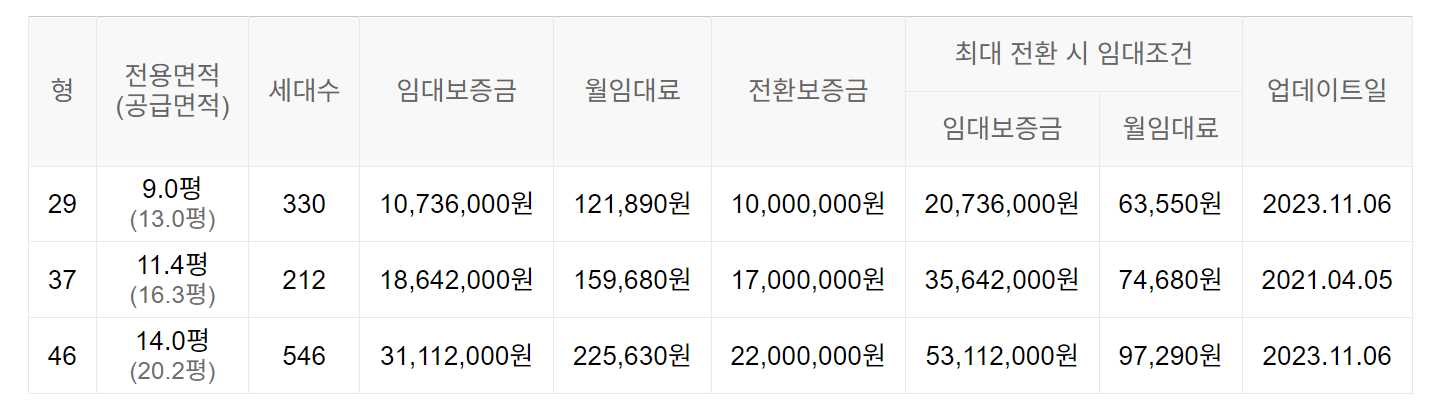 임대보증금 및 월 임대료는 입주자 모집공고일 기준이며, 보증금 최대 전환 시 변동될 수 있습니다.