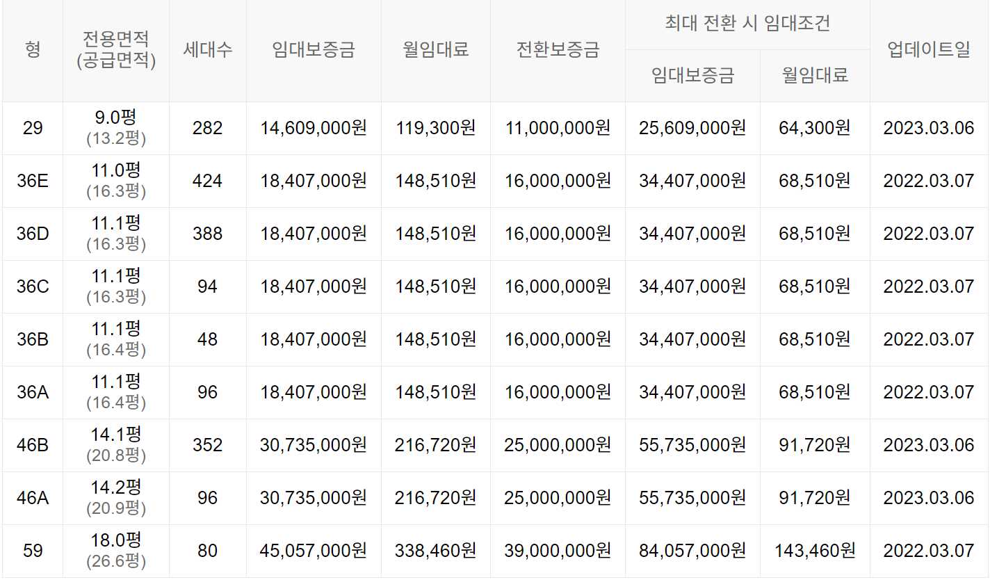 임대보증금 및 월 임대료는 입주자 모집공고일 기준이며, 보증금 최대 전환 시 변동될 수 있습니다.