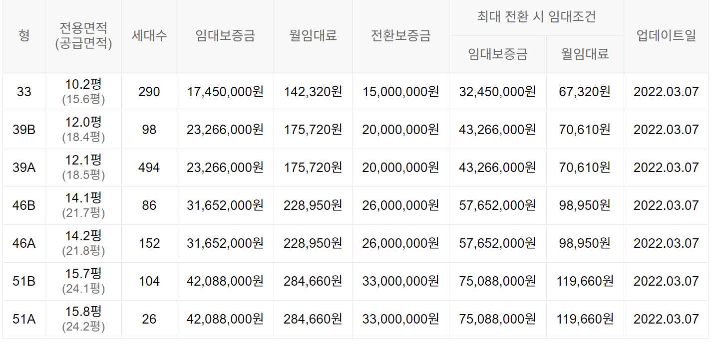 임대보증금 및 월 임대료는 입주자 모집공고일 기준이며, 보증금 최대 전환 시 변동될 수 있습니다.