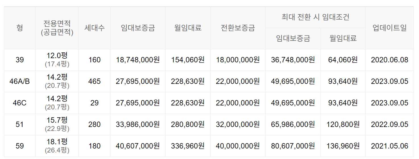 임대보증금 및 월 임대료는 입주자 모집공고일 기준이며, 보증금 최대 전환 시 변동될 수 있습니다.