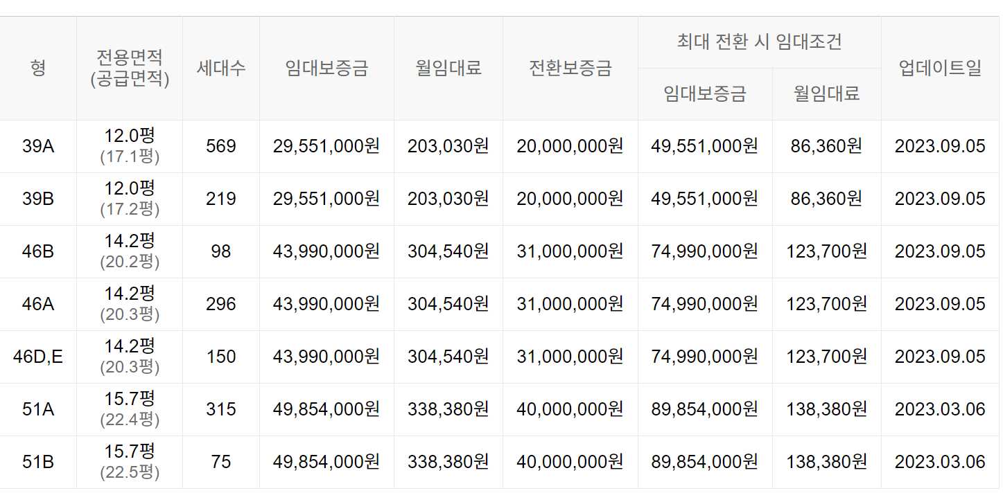 임대보증금 및 월 임대료는 입주자 모집공고일 기준이며, 보증금 최대 전환 시 변동될 수 있습니다.