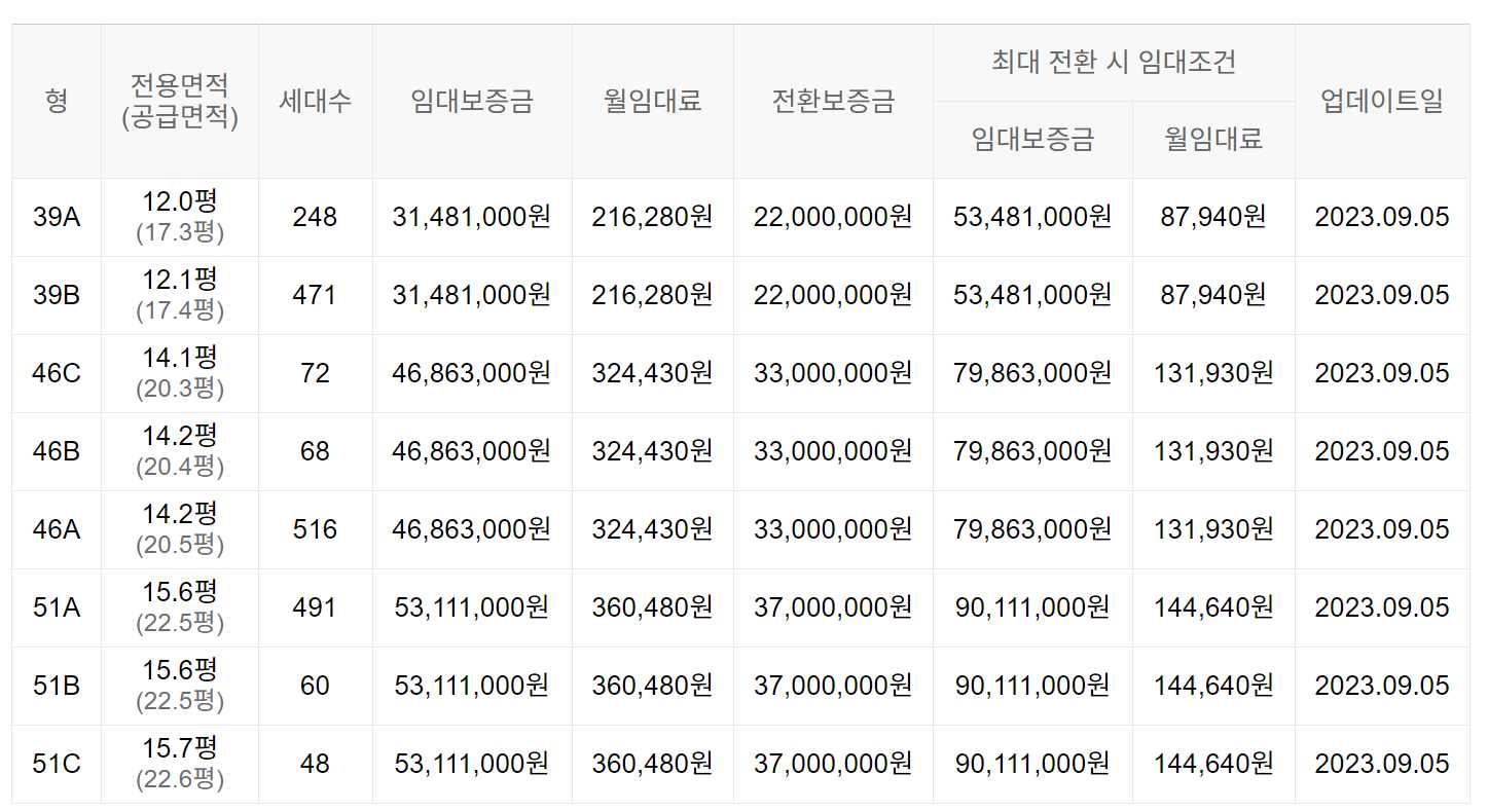 임대보증금 및 월 임대료는 입주자 모집공고일 기준이며, 보증금 최대 전환 시 변동될 수 있습니다.