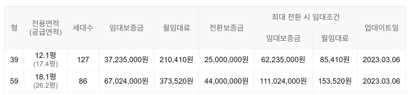 임대보증금 및 월 임대료는 입주자 모집공고일 기준이며, 보증금 최대 전환 시 변동될 수 있습니다.