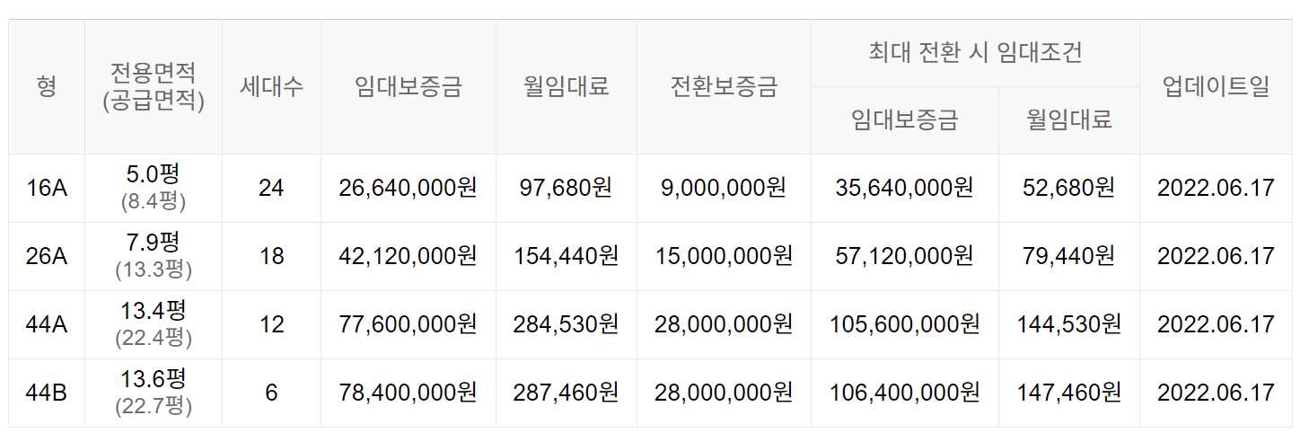 임대보증금 및 월 임대료는 입주자 모집공고일 기준으로 보증금 최대 전환 시 변동될 수 있습니다.