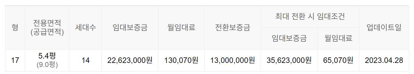 임대보증금 및 월 임대료는 입주자 모집공고일 기준으로 보증금 최대 전환 시 변동될 수 있습니다.