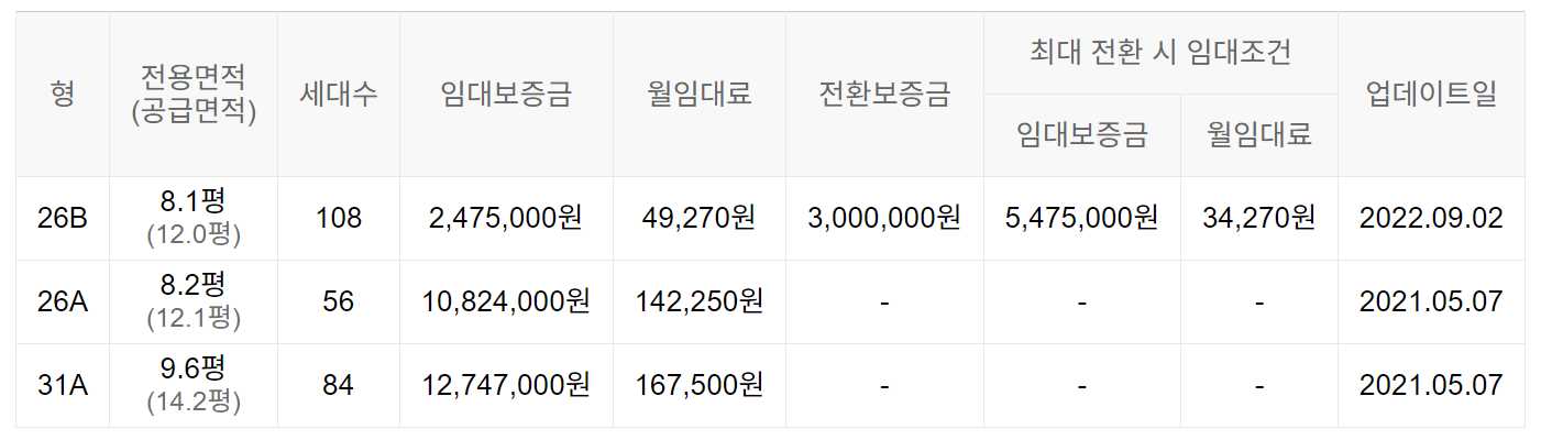 임대보증금 및 월 임대료는 입주자 모집공고일 기준이며, 보증금 최대 전환 시 변동될 수 있습니다.