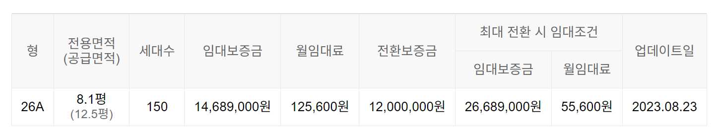 임대보증금 및 월 임대료는 입주자 모집공고일 기준이며, 보증금 최대 전환 시 변동될 수 있습니다.