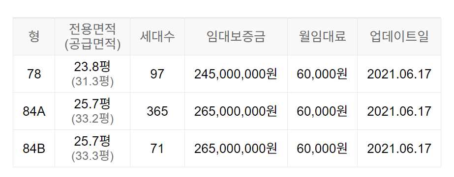 임대보증금 및 월 임대료는 입주자 모집공고일 기준이며, 보증금 최대 전환 시 변동될 수 있습니다.