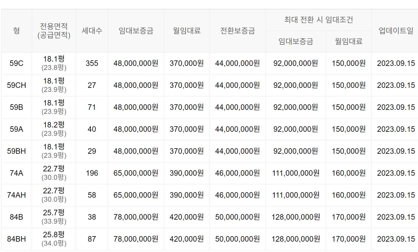 임대보증금 및 월 임대료는 입주자 모집공고일 기준이며, 보증금 최대 전환 시 변동될 수 있습니다.