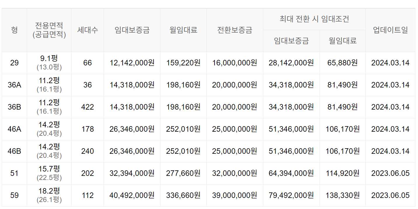 임대보증금 및 월 임대료는 입주자 모집공고일 기준이며, 보증금 최대 전환 시 변동될 수 있습니다.