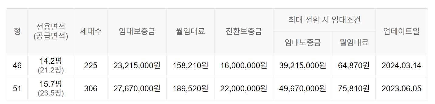 임대보증금 및 월 임대료는 입주자 모집공고일 기준이며, 보증금 최대 전환 시 변동될 수 있습니다.