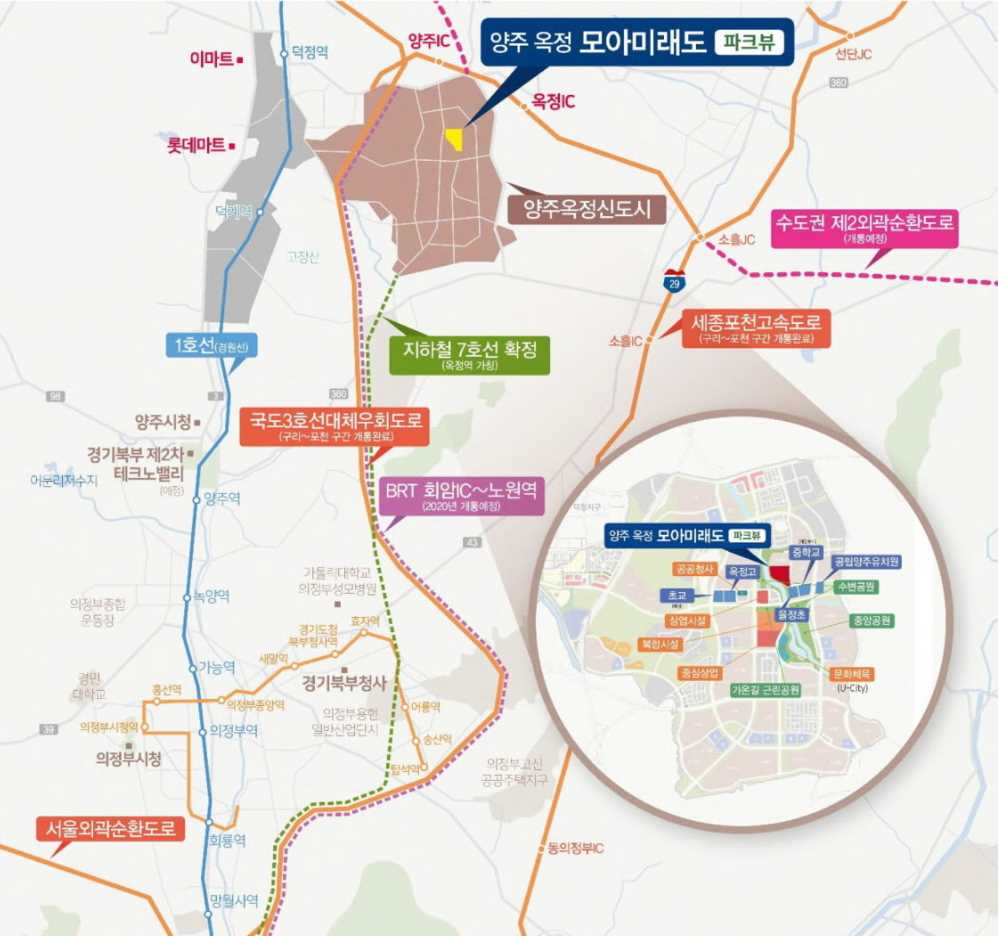 양주옥정 모아미래도파크뷰은 다양한 편의시설을 갖춘 지역에 위치하고 있습니다.