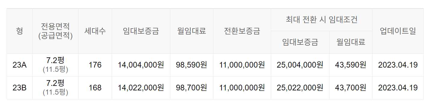 임대보증금 및 월 임대료는 입주자 모집공고일 기준이며, 보증금 최대 전환 시 변동될 수 있습니다.
