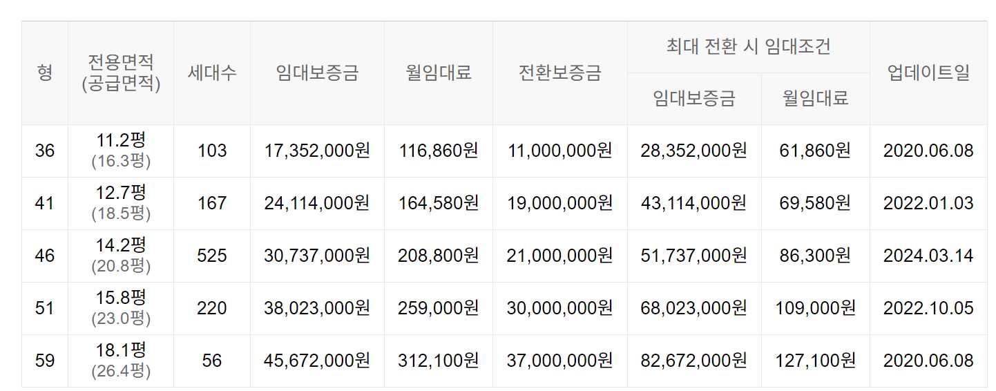 임대보증금 및 월 임대료는 입주자 모집공고일 기준이며, 보증금 최대 전환 시 변동될 수 있습니다.