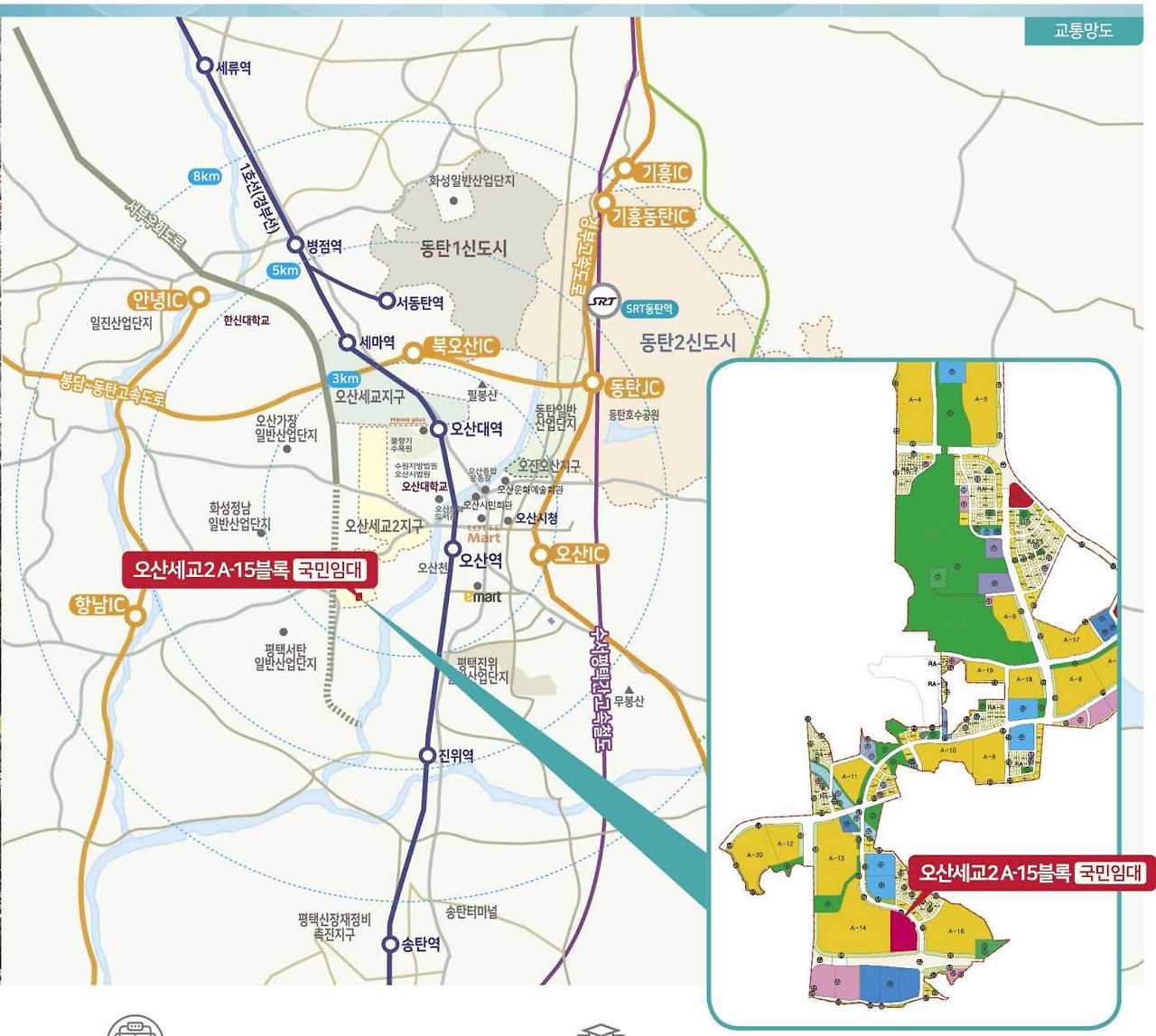 오산세교2A-15블록은 다양한 편의시설을 갖춘 지역에 위치하고 있습니다.