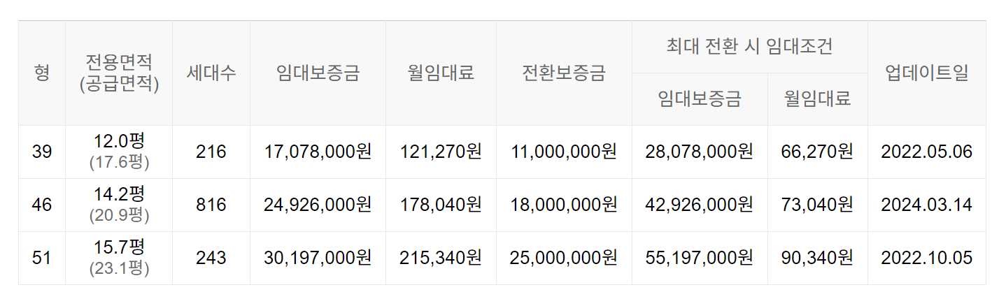 임대보증금 및 월 임대료는 입주자 모집공고일 기준이며, 보증금 최대 전환 시 변동될 수 있습니다.