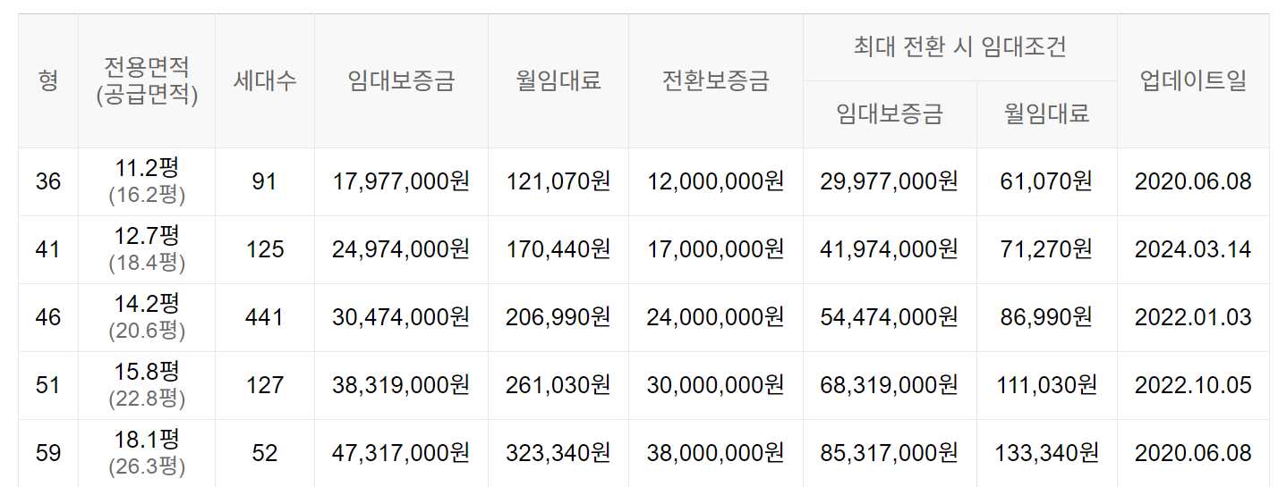 임대보증금 및 월 임대료는 입주자 모집공고일 기준이며, 보증금 최대 전환 시 변동될 수 있습니다.