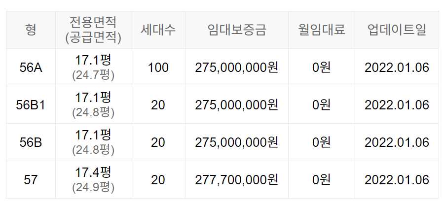 임대보증금 및 월 임대료는 입주자 모집공고일 기준이며, 보증금 최대 전환 시 변동될 수 있습니다.
