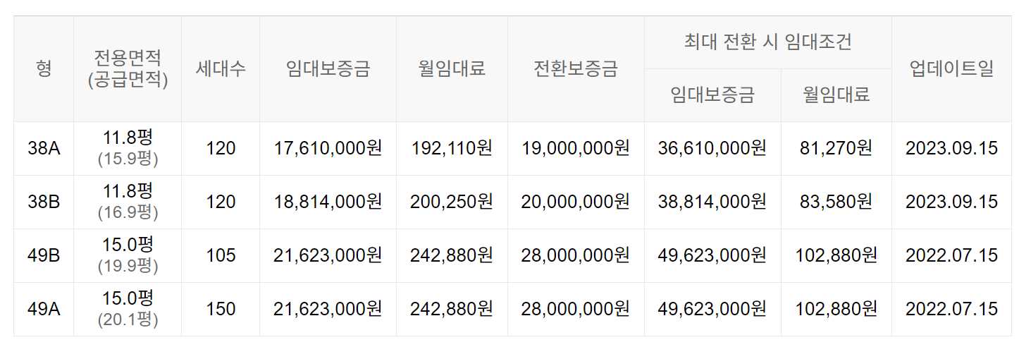 임대보증금 및 월 임대료는 입주자 모집공고일 기준이며, 보증금 최대 전환 시 변동될 수 있습니다.