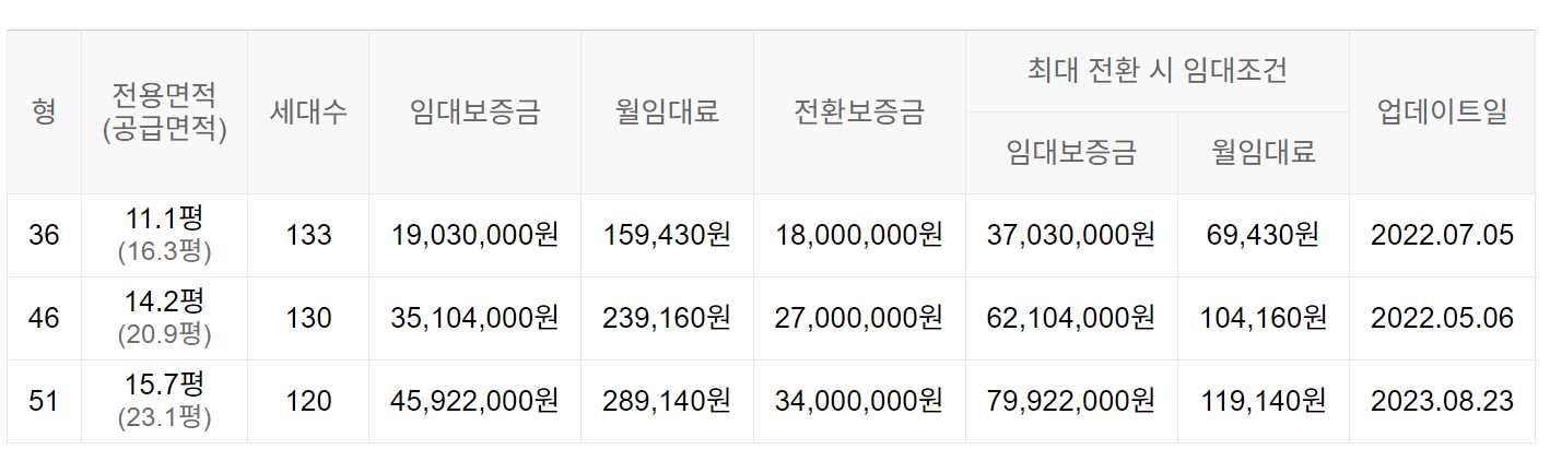 임대보증금 및 월 임대료는 입주자 모집공고일 기준이며, 보증금 최대 전환 시 변동될 수 있습니다.