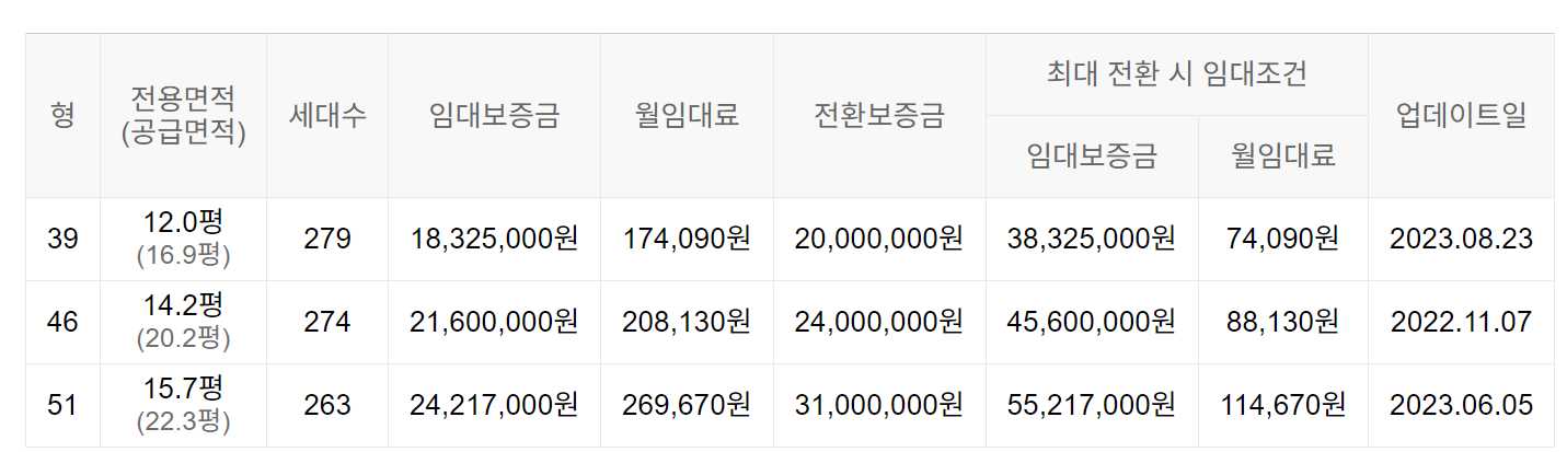임대보증금 및 월 임대료는 입주자 모집공고일 기준이며, 보증금 최대 전환 시 변동될 수 있습니다.