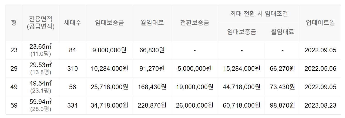 임대보증금 및 월 임대료는 입주자 모집공고일 기준이며, 보증금 최대 전환 시 변동될 수 있습니다.