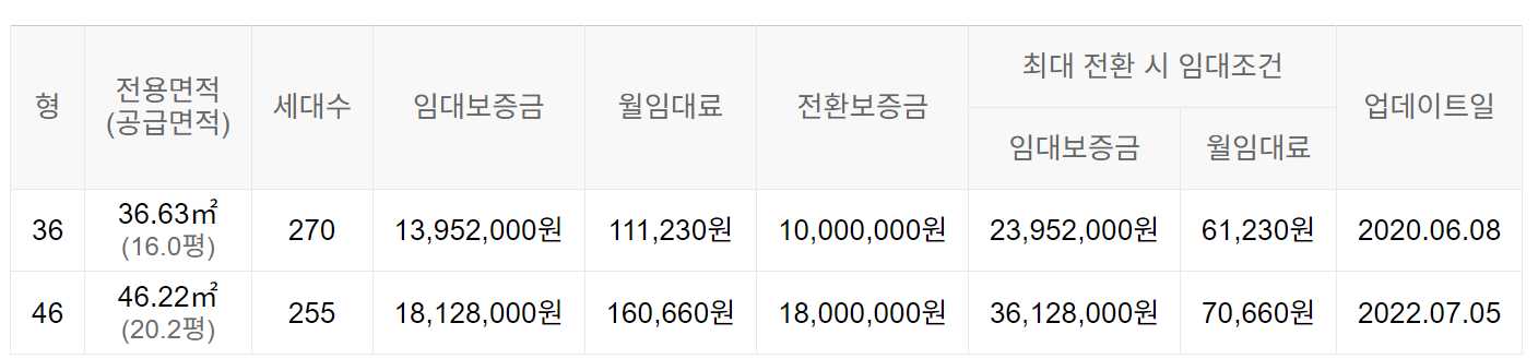 임대보증금 및 월 임대료는 입주자 모집공고일 기준이며, 보증금 최대 전환 시 변동될 수 있습니다.
