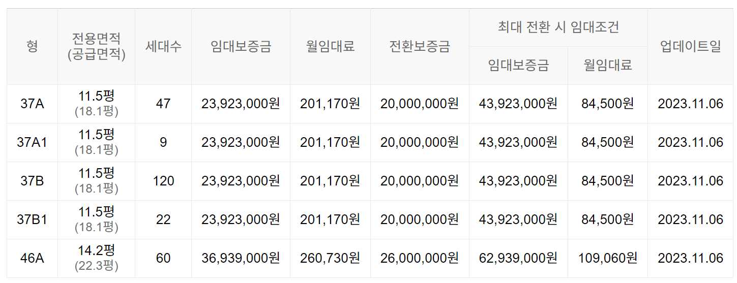 임대보증금 및 월 임대료는 입주자 모집공고일 기준이며, 보증금 최대 전환 시 변동될 수 있습니다.