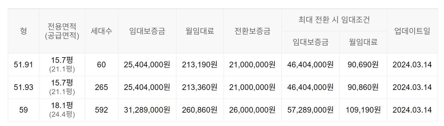 임대보증금 및 월 임대료는 입주자 모집공고일 기준이며, 보증금 최대 전환 시 변동될 수 있습니다.