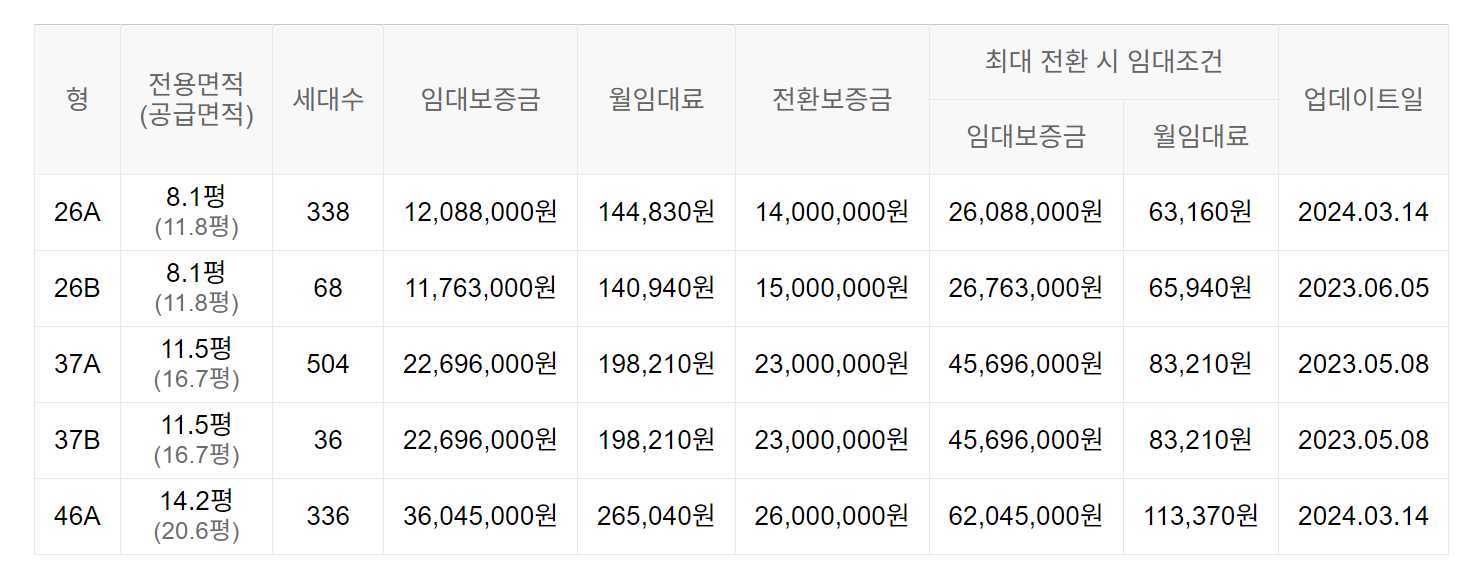 임대보증금 및 월 임대료는 입주자 모집공고일 기준이며, 보증금 최대 전환 시 변동될 수 있습니다.