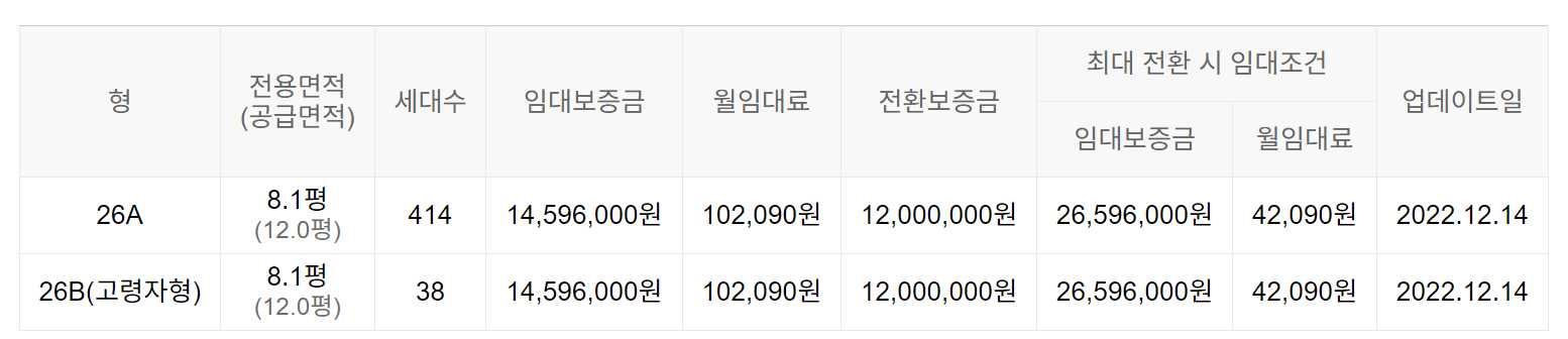 임대보증금 및 월 임대료는 입주자 모집공고일 기준이며, 보증금 최대 전환 시 변동될 수 있습니다.