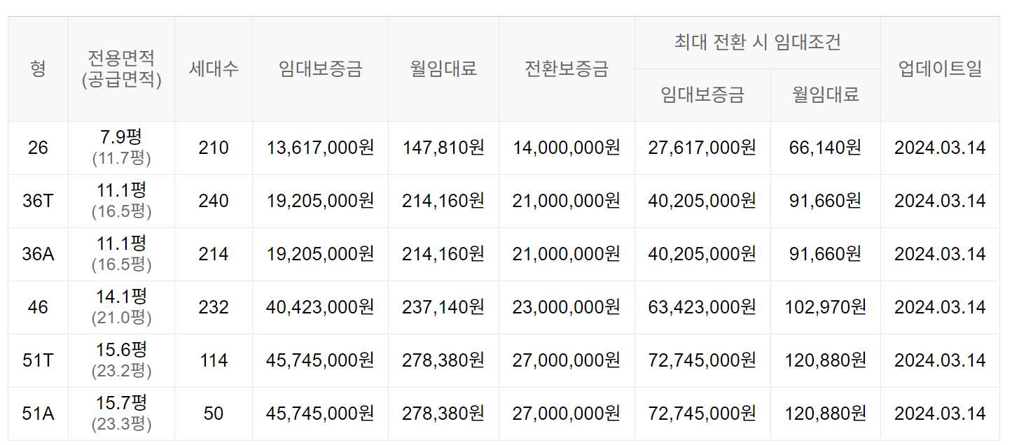 임대보증금 및 월 임대료는 입주자 모집공고일 기준이며, 보증금 최대 전환 시 변동될 수 있습니다.