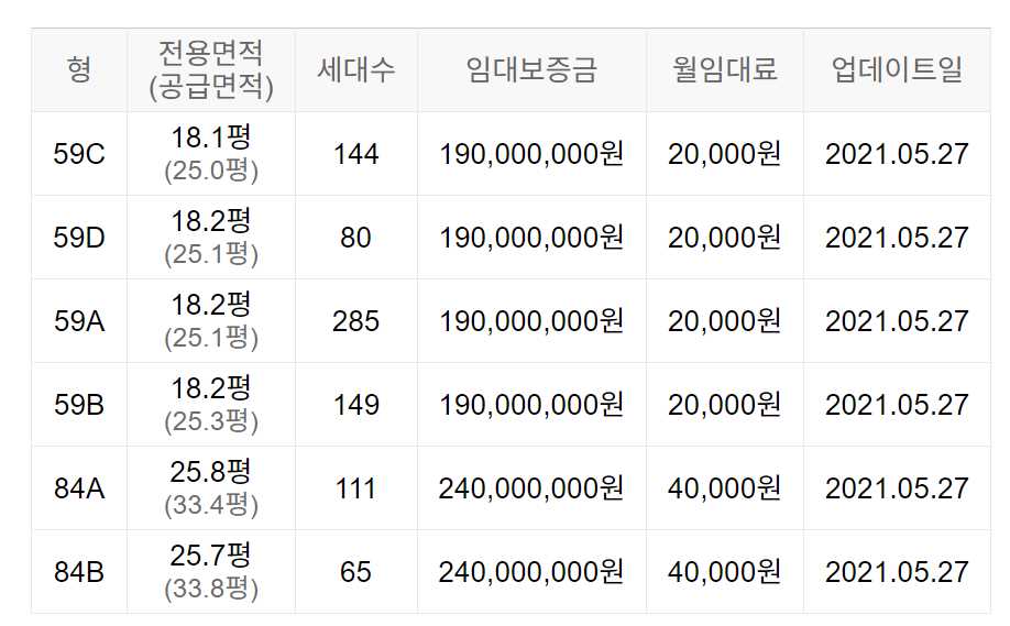 임대보증금 및 월 임대료는 입주자 모집공고일 기준이며, 보증금 최대 전환 시 변동될 수 있습니다.