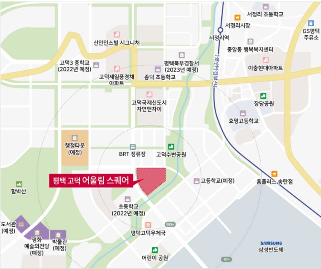 평택고덕어울림스퀘어은 다양한 편의시설을 갖춘 지역에 위치하고 있습니다.
