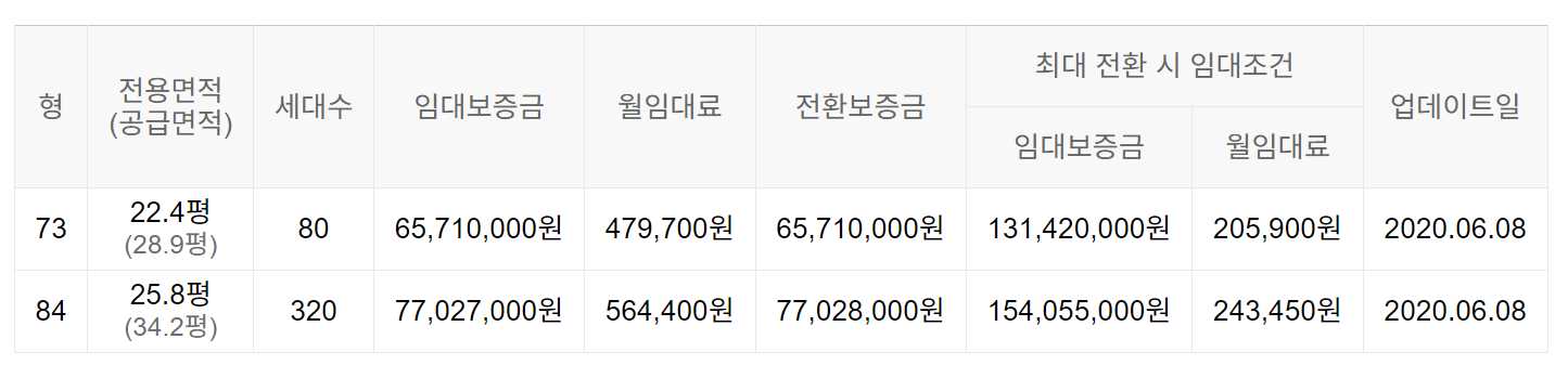 임대보증금 및 월 임대료는 입주자 모집공고일 기준이며, 보증금 최대 전환 시 변동될 수 있습니다.