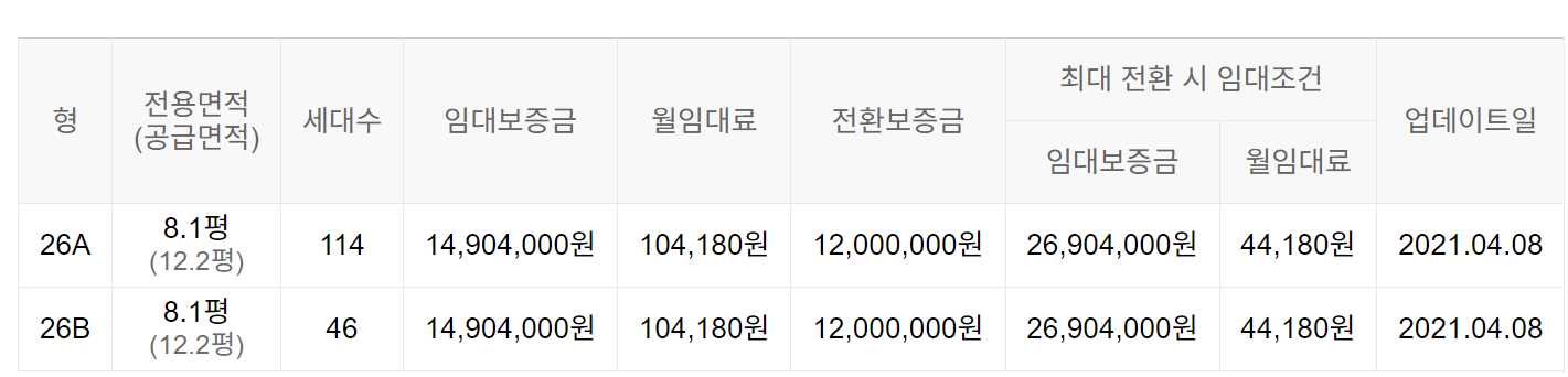 임대보증금 및 월 임대료는 입주자 모집공고일 기준이며, 보증금 최대 전환 시 변동될 수 있습니다.