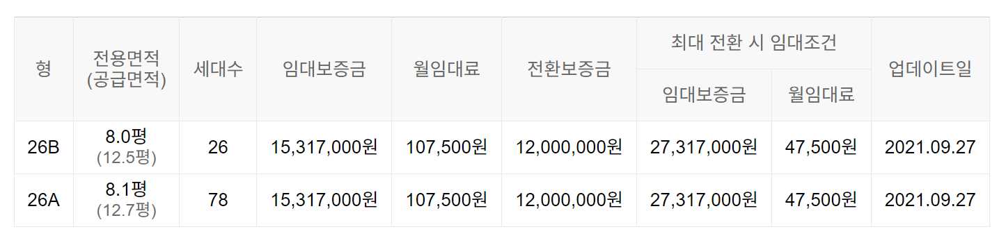 임대보증금 및 월 임대료는 입주자 모집공고일 기준이며, 보증금 최대 전환 시 변동될 수 있습니다.