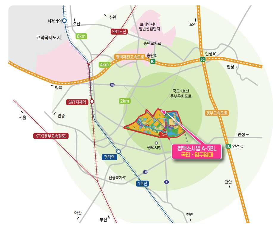 평택소사벌A-5블록은 다양한 편의시설을 갖춘 지역에 위치하고 있습니다.
