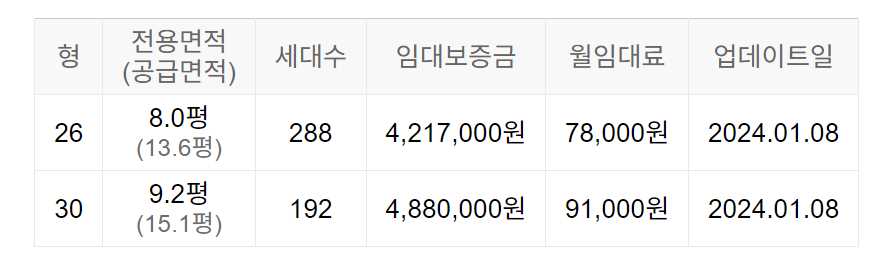 임대보증금 및 월 임대료는 입주자 모집공고일 기준이며, 보증금 최대 전환 시 변동될 수 있습니다.