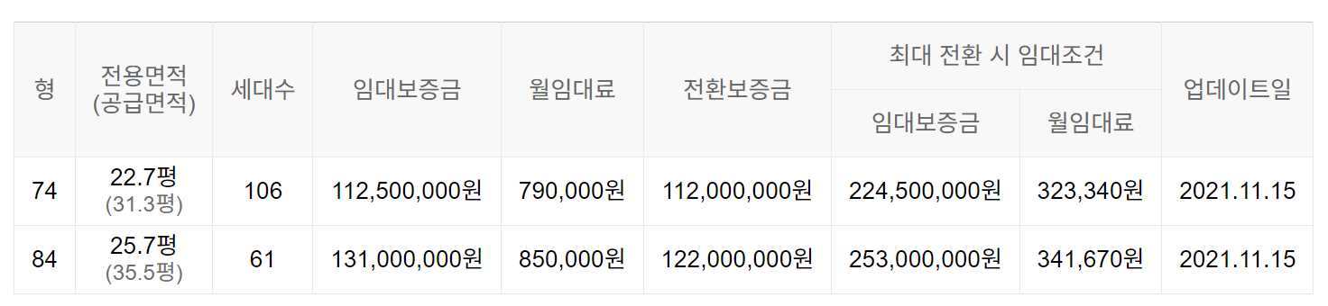임대보증금 및 월 임대료는 입주자 모집공고일 기준이며, 보증금 최대 전환 시 변동될 수 있습니다.